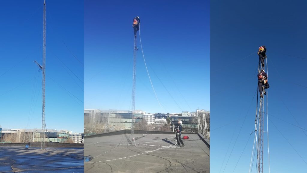 Desmontaje de una torreta de 5 tramos, un mástil y vientos.