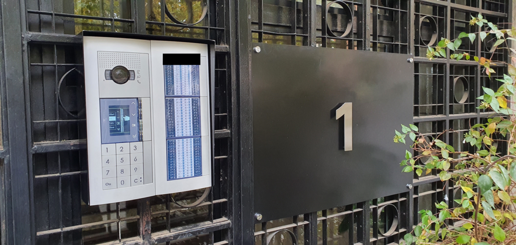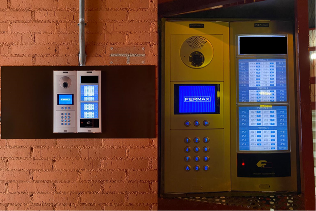 Instalación de videoportero color en la comunidad con llamada por código, con 2 placas generales y embellecedor con número del