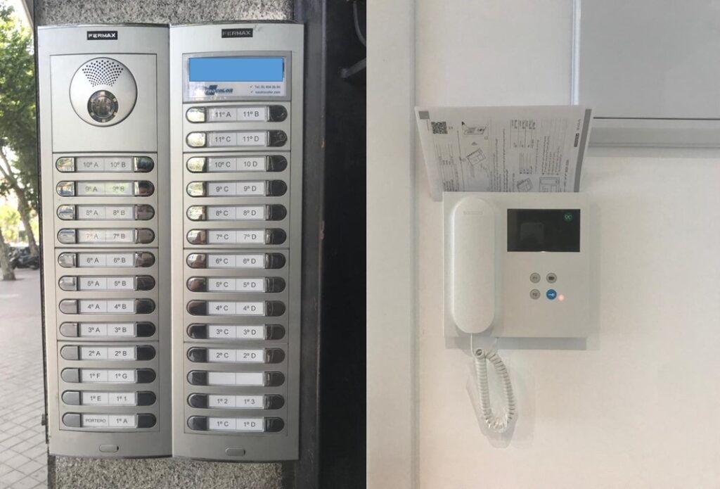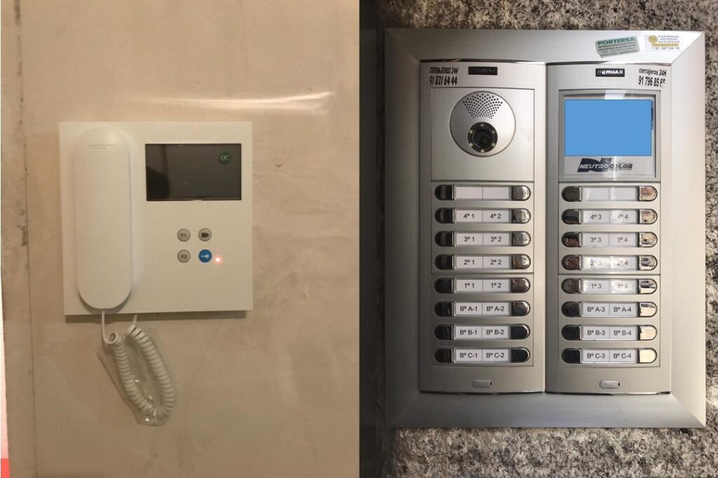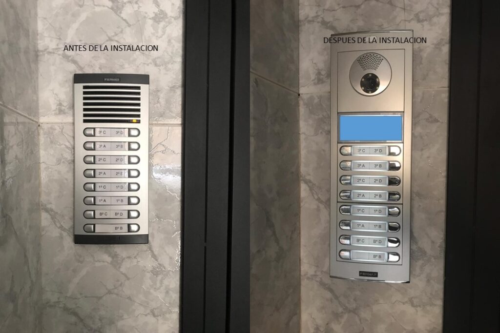 Sustitución de 2 Placas de Portero Automático y Telefonillos, por Videoporteros y Monitores, compuesto por los siguientes componentes/elementos: